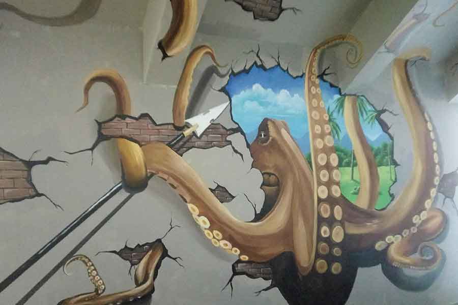 手绘墙的确可以摒弃画框装饰的生硬与造作,将一幅幅流动、立体的画面定格在墙壁上。图案选择的多样性也为家居装饰打上了“个性化标签”。植物图案居今年墙面手绘图案流行之首。绿色植物、海草、贝壳、芭蕉、荷花等都成了手绘墙的宠儿。这种风格恰似女性的娇柔,讲究层次感,强调用夸张的颜色和线条来表现。 可爱的动物或几米风格的漫画也可搬上墙面,这已成为年轻女性的最爱。这种风格多用线条勾勒出男女主角的形象,颜色以浅色为主。如选用卡通图案,可以出现在角落、低矮处,可突出创意,以假乱真。